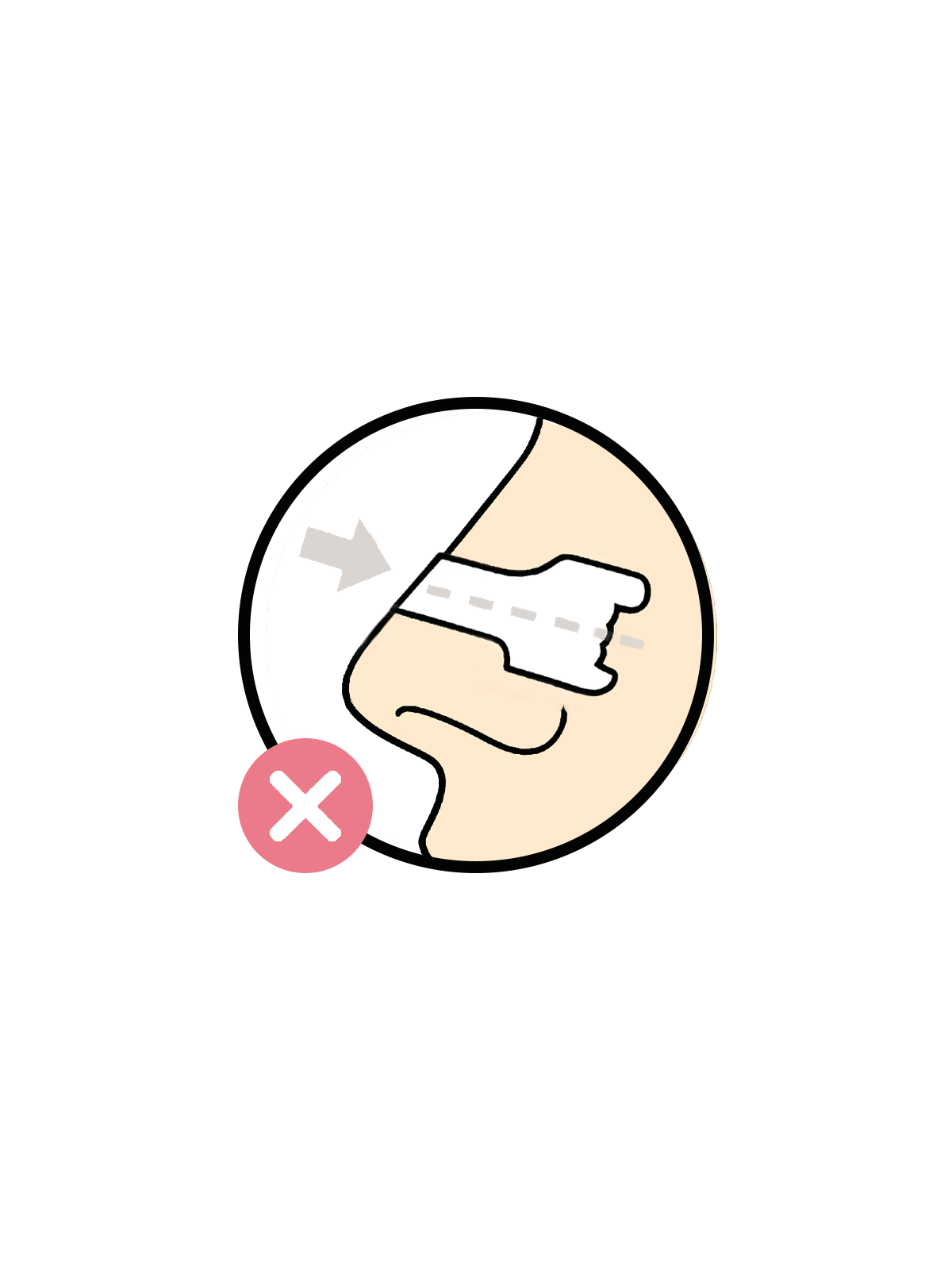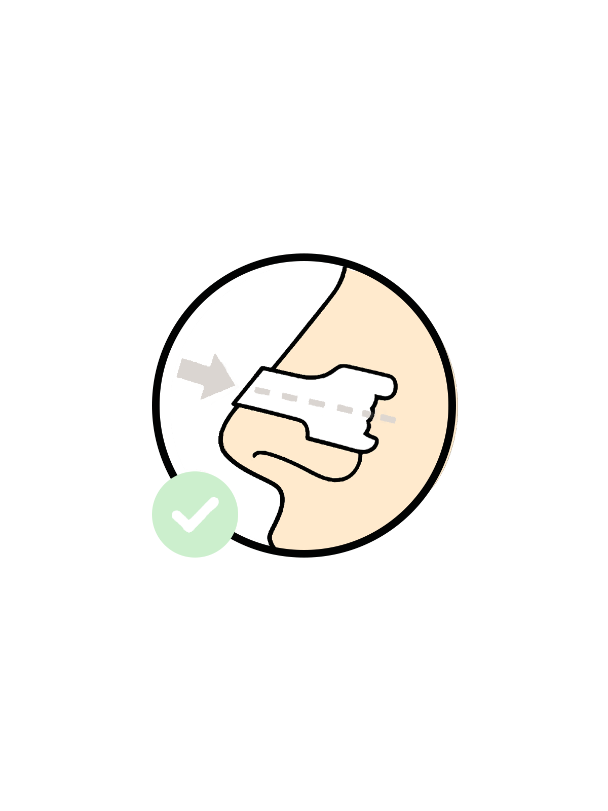 Ausrichten: Die Mitte des Streifens auf die Mitte des Nasenrückens legen, knapp oberhalb der Nasenflügel.