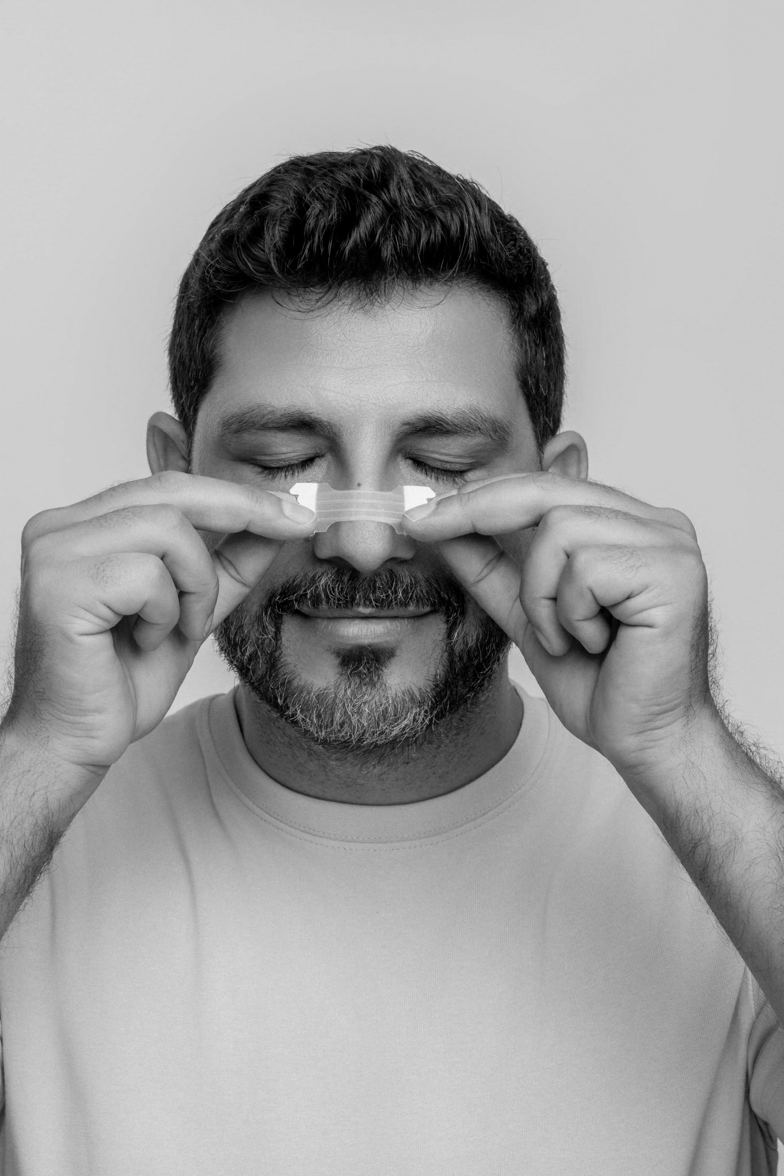 Ziehe den Schutzstreifen ab und platziere den Nasenstrip mittig auf dem Nasenrücken.